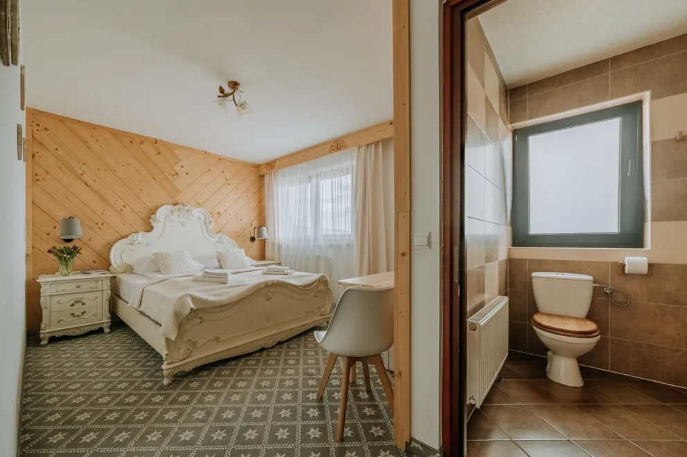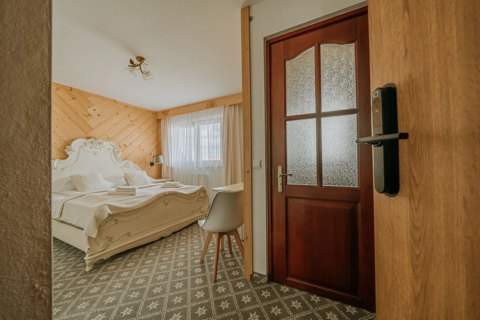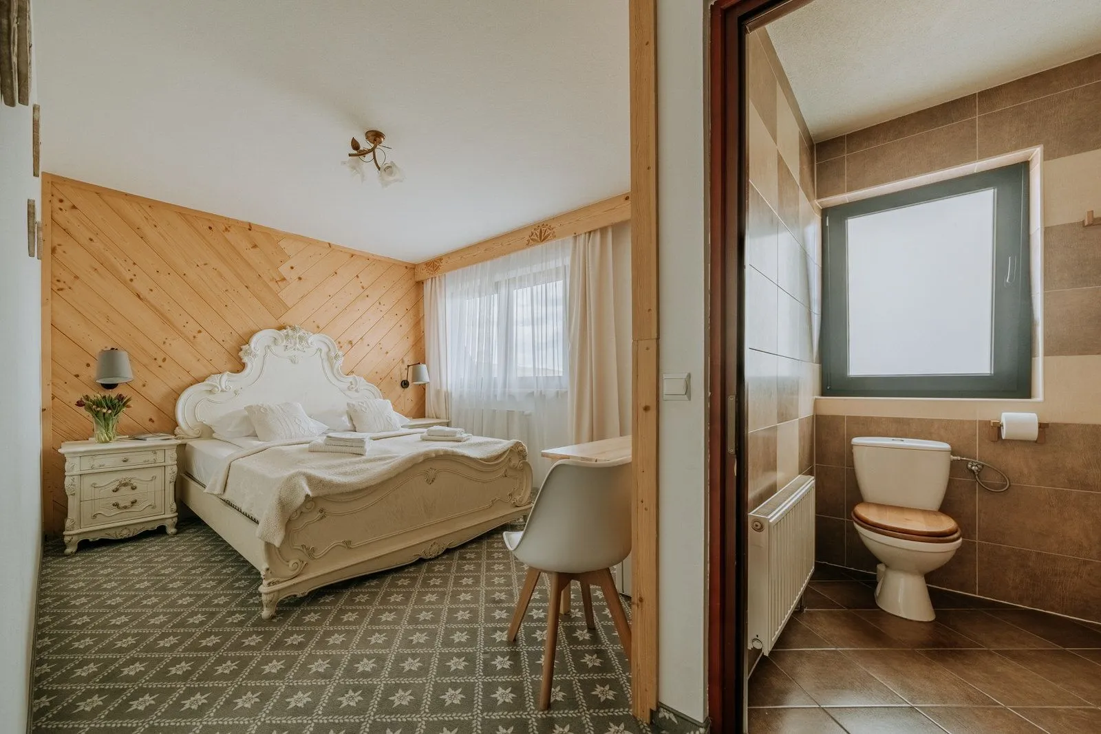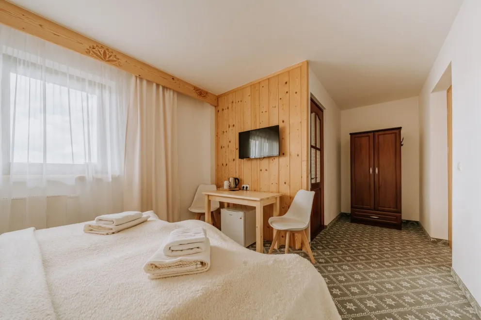 Pokój 2 osobowy z własną łazienką, tv oraz wifi. Stolik kawowy z czajnikiem elektrycznym, kubeczki (reszta naczyć dostępna z jadalni). Ręczniki, mydełko i szampon. Suszarka do włosów. Do pokoju przysługuje jedno bezpłatne miejsce parkingowe.